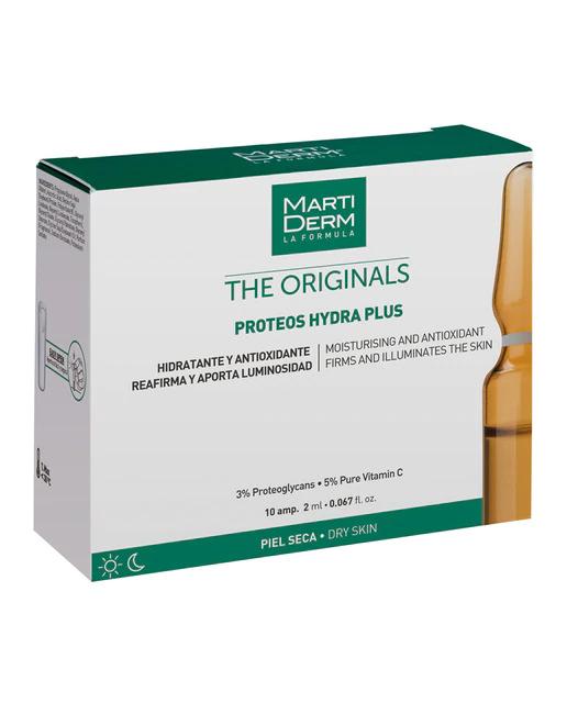 Hidratante y antioxidante que reafirma y aporta luminosidad. Las 10 Ampollas Proteos Hydra Plus de Martiderm están formuladas para proporcionar una intensa hidratación y aportar un efecto antioxidante en la piel. Ideal para revitalizar el cutis, mejorando su apariencia y brindándole un aspecto radiante y saludable.
