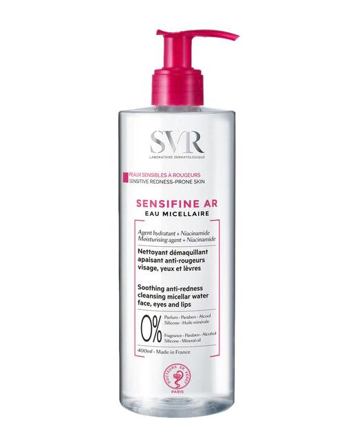 El Agua Micelar Sensifine AR SVR es un limpiador desmaquillante específico para pieles sensibles con tendencia a las rojeces. Este producto ayuda a limpiar y desmaquillar mientras alivia la irritación en la piel.