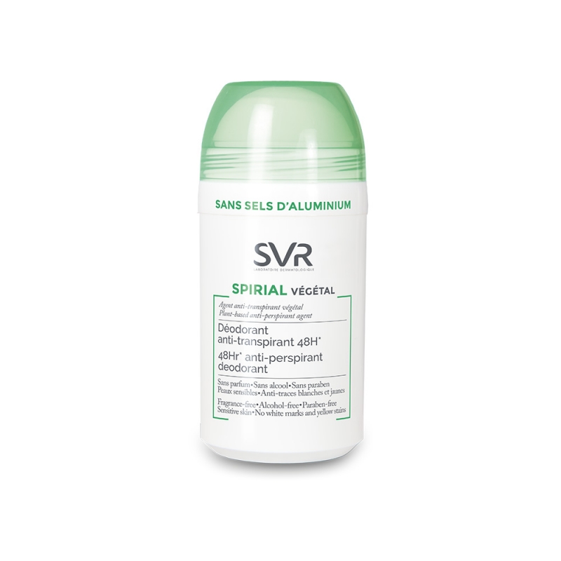 El desodorante SVR Spirial es una fórmula diseñada con un complejo de ingredientes activos de origen vegetal, que absorbe la humedad y combate los malos olores con una tolerancia óptima. Este desodorante antitranspirante ofrece protección durante 48 horas y está libre de sales de aluminio. Su bola se desliza de manera suave para una aplicación rápida, proporcionando confort y suavidad. Es ideal para pieles sensibles, recién depiladas o afeitadas, y es recomendado para personas con transpiración normal, tanto en adolescentes como en adultos, aplicado específicamente en las axilas. Contiene una alta concentración de principios activos de origen vegetal para garantizar una efectiva acción antitranspirante de 48 horas.